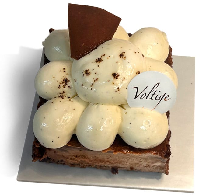 Croustillant chocolat Biscuit brownie Crémeux chocolat Ganache montée vanille bio de Madagascar Caramel beurre salé